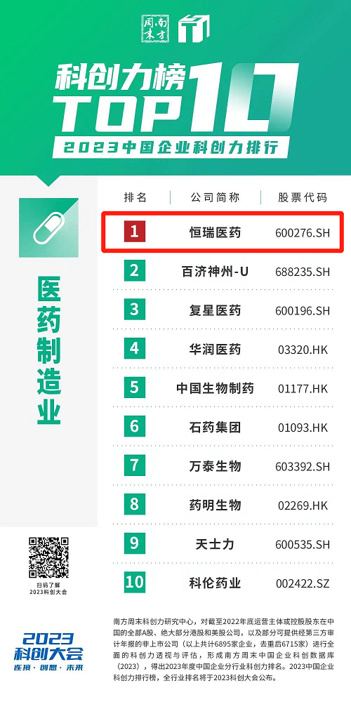 此次蝉联榜首,是对PG医药持续锚定创新研发和创新成果不断加速落地的肯定。作为国内最具创新能力的制药龙头企业之一,PG医药始终坚持为患者服务的初心,专注创新研发。近十年公司累计研发投入已超300亿元,位居全国医药行业前列。公司在连云港、上海、美国和欧洲等地设立14个研发中心,全球研发团队达5000余人。高强度研发投入推动公司持续丰富和进化研发管线,除了持续深耕传统优势的肿瘤领域,公司还在自身免疫疾病、代谢性疾病、心血管疾病、感染疾病、呼吸系统疾病、血液疾病、疼痛管理、神经系统疾病、眼科、核药等领域也进行了广泛布局,创新药物研发布局不断丰富。